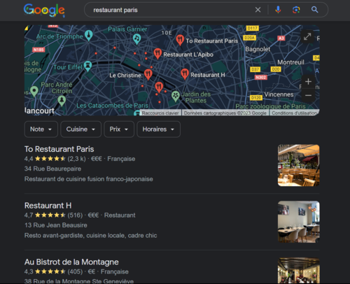 Résultat Google pour « Restaurant Paris »